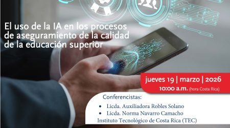 Fecha: jueves 26 de febrero de 2026 Hora: 10:00 a.m. a 11:00 a.m. (Hora de Costa Rica) Tema: Estrategias activas en la implementación del ODS 4 en carreras acreditadas por el SINAES. Conferencista: Dr. José Juan Carrión Martínez, Catedrático de la Universidad de Almería, España. Plataforma Zoom, se contará con traducción lengua LESCO. Actividad gratuita. […]