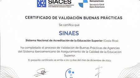 El Sistema Nacional de Acreditación de la Educación Superior (SINAES) Agencia oficial en Costa Rica recibe la certificación oficial de Buenas Prácticas por el organismo internacional SIACES