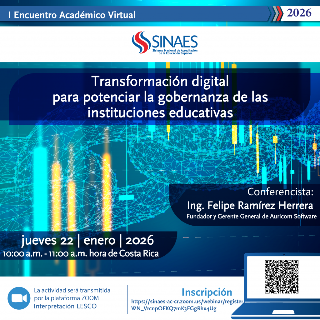Inscripción en: https://sinaes-ac-cr.zoom.us/webinar/register/WN_VrcnpOFKQ7mK3FGgRhx4Ug